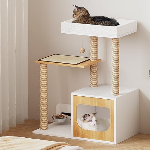 ✔ Albero per gatti tutto in uno: il grande albero per gatti include 3 piattaforme e 2 ciotole per gatti in modo che i tuoi gatti possano graffiare, appollaiare, saltare e anche mangiare a loro piacimento. Il posatoio superiore è progettato con cuscino di lusso per fornire un posto confortevole per i tuoi amici pelosi per rilassarsi o fare un pisolino.