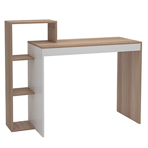 DlandHome Scrivania Piccola con ripiano 90 cm Computer Portatile Tavolo da Ufficio in Legno, scrivania con Spazio di archiviazione per casa, Studio, Ufficio, Noce/Bianco