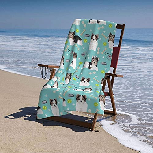DLJIYZX Telo Mare Biewer Terrier Cani Giocattolo Cane Giocattolo Razze Carino Biewer Terrier Coperta in Microfibra Altamente Assorbente Asciugamani Morbidi 80X130CM