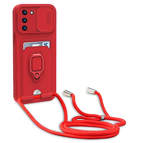 Dllatui Cover Compatibile con Samsung Galaxy S23 Plus, Cover con Cordino Tracolla, Slidable Fotocamera Protezione Custodia,Supporto,Slot Schede, Silicone Case (Rosso)