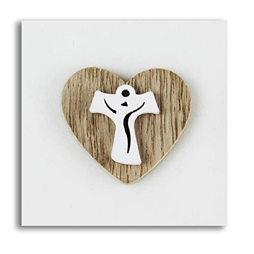 DLM-27773 (Kit 12 Pezzi) Calamita Magnete Cuore in Legno Croce Tau Crocetta Confettata Segnaposto bomboniera