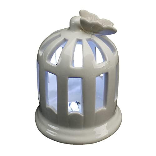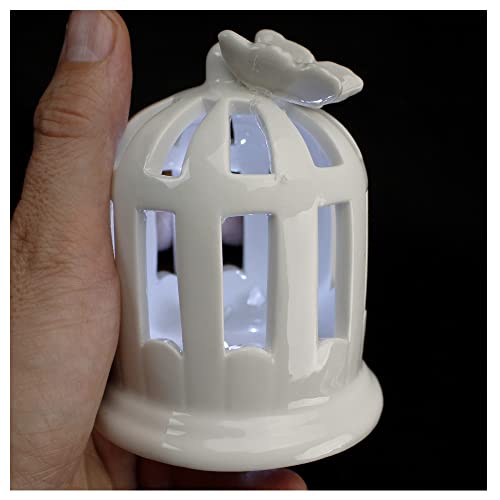 DLM-32598 (Kit 6 Pezzi) Lanterna Lampada Bianca in Porcellana Luce Lucetta LED Notturna Farfalla Nozze Matrimonio Arredo bomboniera