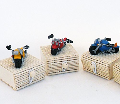 DLM24405 Scatoline Porta Confetti in Bambu con Moto in Resina (24 Pezzi) bomboniera Matrimonio Comunione 18 Compleanno