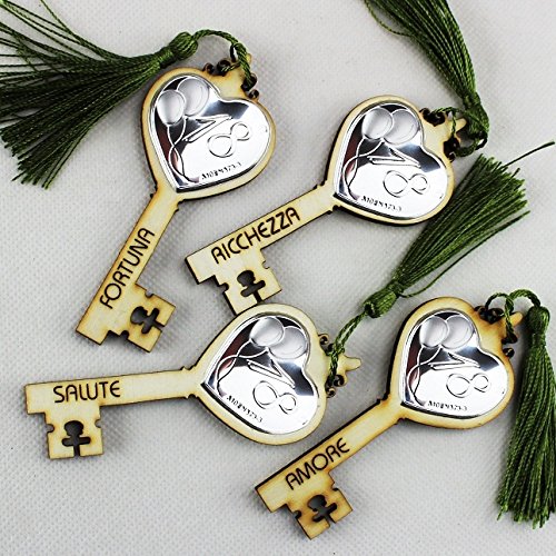 DLM25300 Chiave Portafortuna calamita in Legno per 18 Compleanno Verde (Kit 12 Pezzi) bomboniera