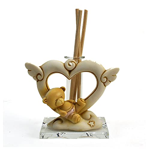 DLM32836 (Kit 6 Pezzi) Profumatore in Vetro con Orso Orsetto Cuore Stella Stellina Bimba Nascita in Resina Battesimo Diffusore per Ambienti Profumo bomboniera