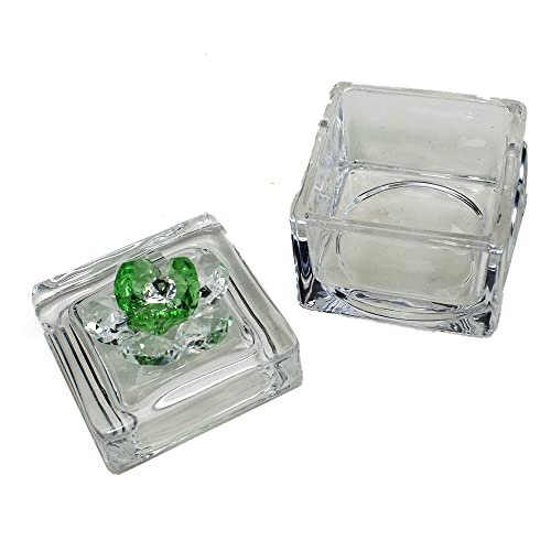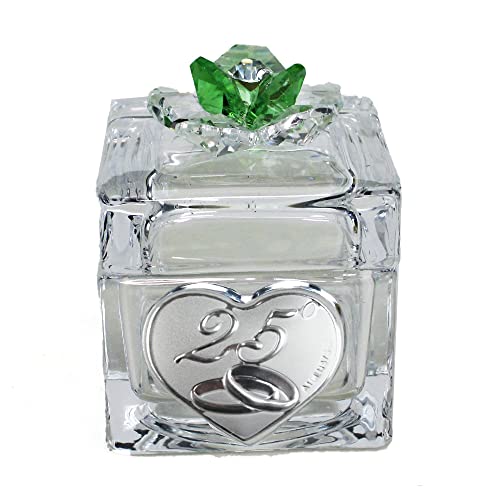 DLM34450-verde Scatola Scatolina Porta Confetti in Vetro con Fiore colorato in Cristallo e Cuore FEDI 25 Anniversario Nozze Matrimonio Confettata_Verde bomboniera