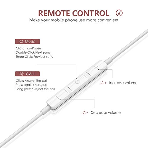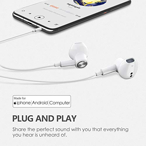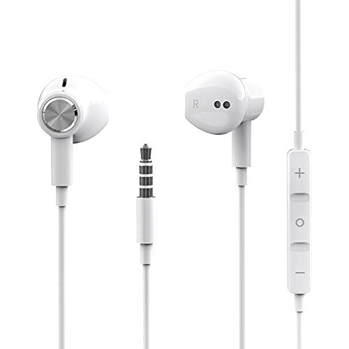 Dlordy Auricolari per cuffie intrauricolari per iPhone, versione aggiornata auricolari da 3,5 mm microfono incorporato e controllo del volume compatibili per iPhone 6/6P/5/5S, iPad, Android-Bianco