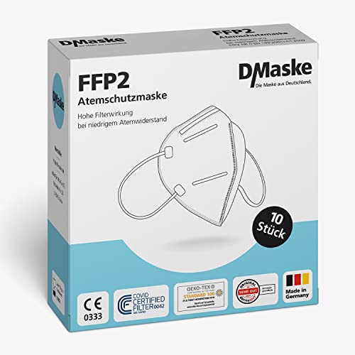 DMaske Respiratore FFP2 10 pezzi- Produttore tedesco - Testato e certificato CE secondo la norma EN 149:2001 + A1:2009