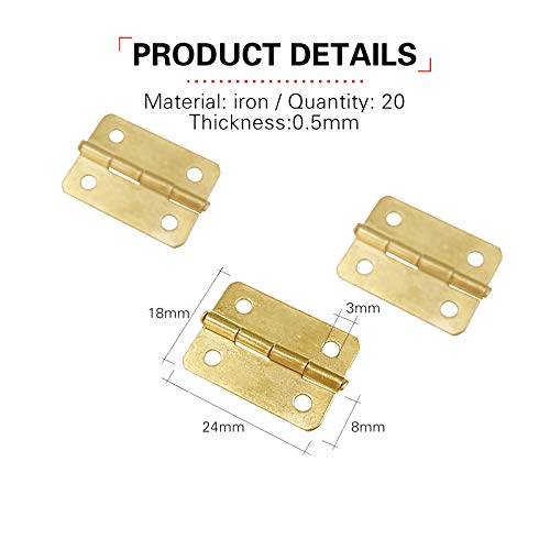 DMGARDEN 20 pezzi Cerniere piccole in ferro, cerniere per porte, cerniere vintage, cerniere per mobili con viti, connettori per cerniere a testa per cassetti (24x18x0,5 mm)