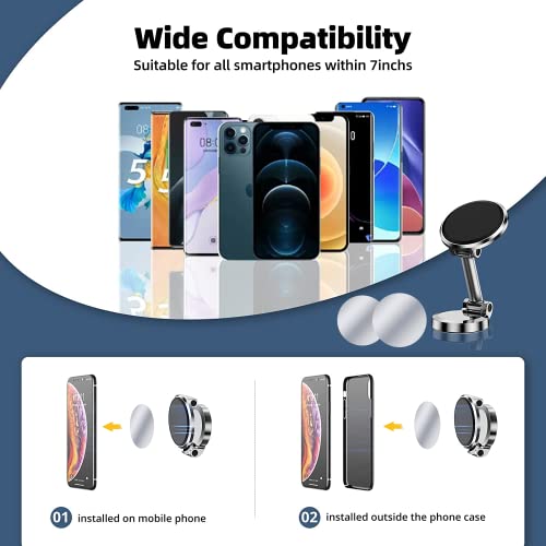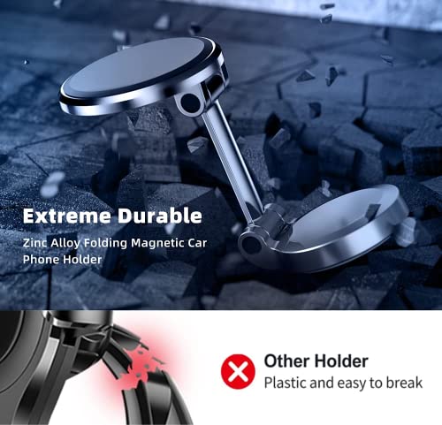 【Funziona con tutti i telefoni】 Questo supporto magnetico pieghevole per telefono da auto in lega non ha limiti alle dimensioni del telefono cellulare, ampiamente compatibile con iPhone 14/14 Pro/14 Mini/14 Pro Max/13/13 Pro/13 Mini/13 Pro Max/12/12 Pro/12/12 Mini/SE/11/11 Pro/11 Pro Max/XS MAX/XS/XR/X/8/8Plus/7Plus/6 6s Plus e Samsung Galaxy S23 S22 Note20/S20/ S20+ / S20 Ultra 5G / Note10 / Note9 / Note 8 / S10 e altro ancora.