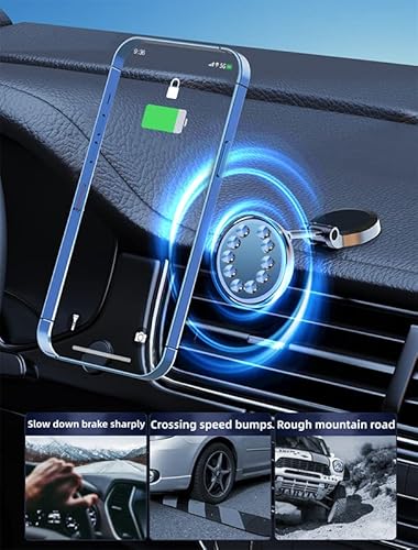 【Potente supporto magnetico per telefono da auto】 Il nuovo supporto magnetico per telefono da auto pieghevole in lega di zinco 2023 è dotato di 10 potenti magneti che forniscono una potenza di aspirazione super forte. Tiene facilmente e saldamente il tuo telefono, senza preoccuparti di far cadere il telefono, anche se urti, curve strette o arresti improvvisi quando montato sul cruscotto dell'auto.
