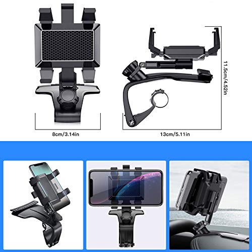 DMJWAN Supporto per Telefono per Auto,Supporto Multifunzione per Cruscotto Auto Specchietto Retrovisore con Clip a Molla Regolabile a 360°, Adatto per Smartphone da 3 a 7 Pollici (nero brillante)