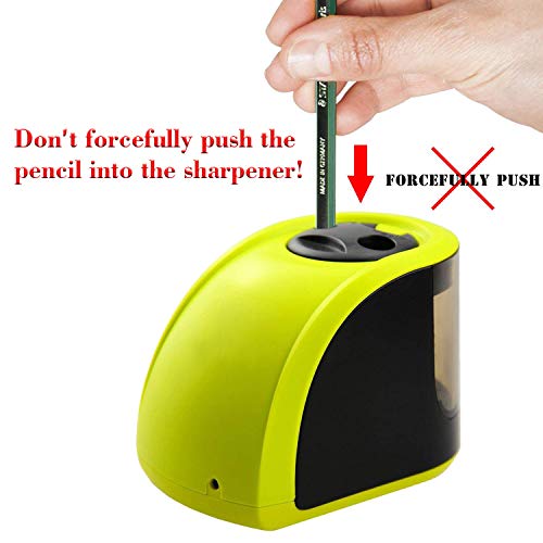 Design a 1,2 fori: questo temperamatite elettrico 2 fori per matite di diversi diametri di matita: 6-8 mm e 9-12 mm;