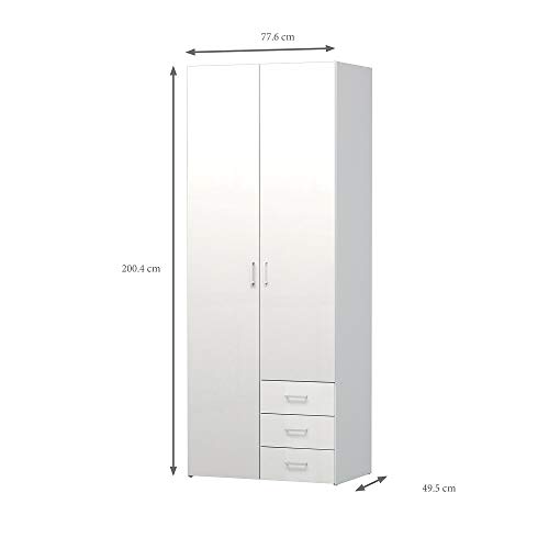 Dmora - Armadio guardaroba a due ante e tre cassetti, colore bianco, Misure 77 x 200 x 49,5 cm