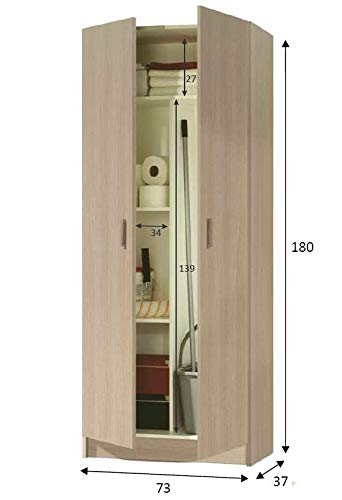 Dmora Armadio Multiuso Ante battenti e Due Ripiani Regolabili in Altezza, Colore Rovere, cm 73 x 37 x h180