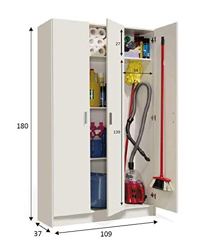 Questo articolo viene spedito in 2 scatole. Le diverse scatole possono essere consegnate con un massimo di 72 ore di differenza. Questo pratico armadio multiuso può soddisfare ogni vostro bisogno, grazie al capiente spazio di situato al loro interno formato da tre ripiani regolabili ed uno superiore fisso