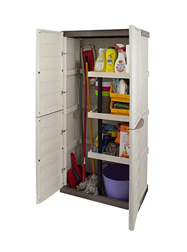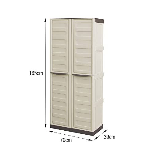 Dmora Armadio portascope da esterno o interno, Mobile a 2 ante e 3 ripiani in polipropilene, 100% Made in Italy, cm 70x39h165, colore Beige