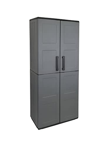 Dmora Armadio portascope da esterno o interno, Mobile a 2 ante e 3 ripiani regolabili in polipropilene, 100% Made in Italy, cm 68x37h163, colore Grigio