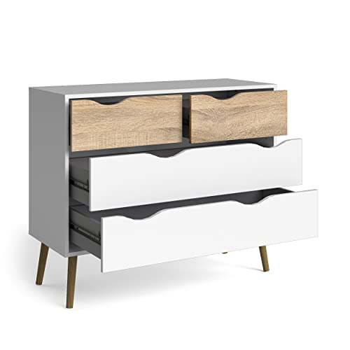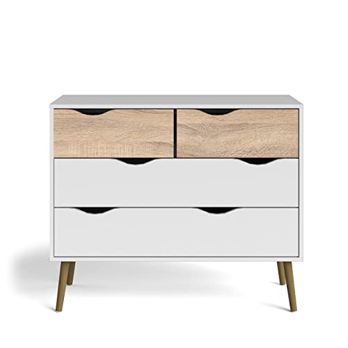 Dmora Cassettiera a Quattro cassetti, Colore Bianco e Rovere, cm 98 x 81 x 39