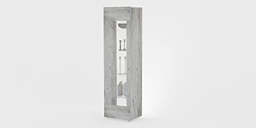 VETRINA CON ANTA SINGOLA: Moderno mobile vetrinetta di design, strutturato con un'anta singola con dettaglio tra i ripiani interni, interamente di colore grigio cemento