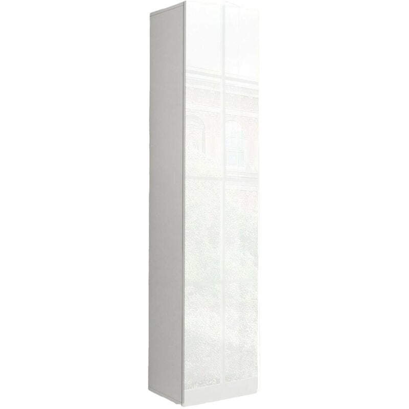 COLONNA PENSILE: Elegante e moderna colonna multiuso con anta singola e cinque ripiani interni, interamente di colore bianco lucido, un colore adatto ad arredare tutti i tipi di ambiente. STRUTTURA E UTILIZZO: Pratico armadio multiuso ad un'anta senza maniglie con un design moderno, strutturato internamente con cinque ripiani: mobile utilizzabile come scarpiera, piccolo guardaroba o come armadietto per riporre qualsiasi tipo di oggetto passando dalla camera da letto, al ripostiglio/bagno oppure sul balcone di casa - Possibile da posizionare a terra oppure a parete come un mobile pensile. PRATICO E INNOVATIVO: Formato da cinque comodi ripiani e da un'anta priva di maniglie che ne esalta l'eleganza, infatti il suo stile semplice e moderno ne permette il posizionamento in qualsiasi stanza del vostro appartamento, dall'atrio fino alla camera da letto: è il prodotto ideale per chi è alla ricerca di un armadio funzionale salvaspazio per la propria casa - La colorazione bianco lucido è molto