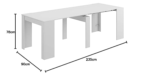 CONSOLLE COMPTON - Tavolo da pranzo allungabile, Tavolo con allunghe multiuso estensibile fino a 10 posti, cm 51/237x90h78, Bianco Lucido