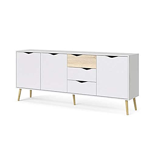 Dmora Credenza Ante e Tre cassetti, Colore Bianco e Rovere, cm 195 x 81 x 39