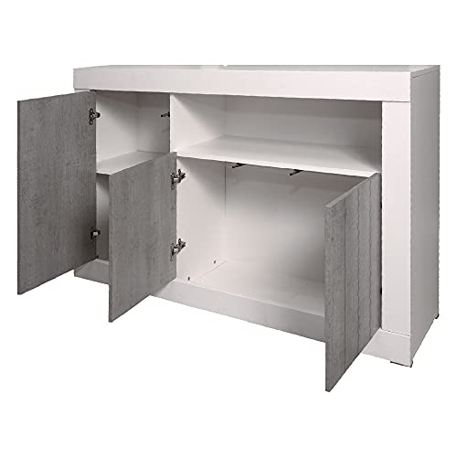 Dmora Credenza moderna a 3 ante, Buffet da cucina, Madia con scaffali e ripiani, Mobile da soggiorno Porta TV, cm 138x42xh86, colore Bianco e Cemento