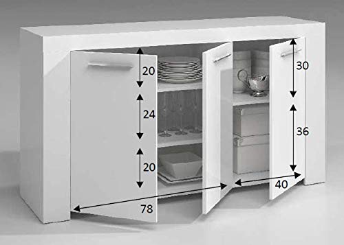 STRUTTURA E UTILIZZO - Mobile da soggiorno pratico e salvaspazio strutturato con tre ante battenti, internamente tre ripiani fissi - Le ante sono dotate di maniglie eleganti migliorarne il design - Il ripiano superiore rende questa madia un mobile porta TV dove riporre i vostri soprammobili preferiti - Questo articolo d'arredamento è perfetto per arredare sala da pranzo, salotto, corridoio, ingresso, corridoio, o ufficio contenendo in modo ordinato stoviglie, bicchieri, tovaglie, posate, libri, documenti o oggetti decorativi
