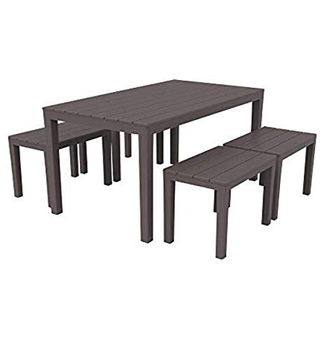 Set da esteno con 1 tavolo rettangolare e 4 panche, color marrone