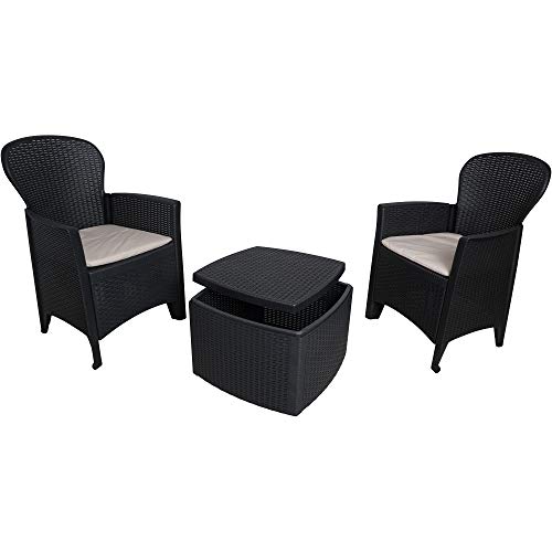 Dmora Set da Giardino con Cuscini, 2 poltrone e 1 tavolino Contenitore da Esterno, Made in Italy, Color Antracite