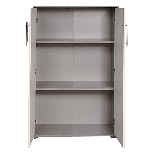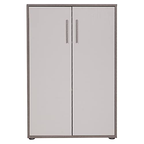 Dmora Libreria a 2 ante e 2 ripiani, Scaffale per libri e documenti, Credenza portaoggetti da ufficio, cm 79x34h188, colore Bianco e Cemento
