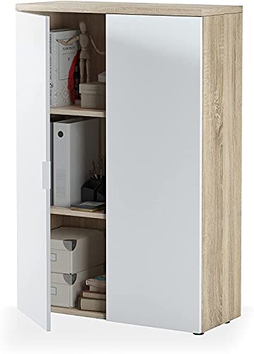 Dmora Mobile Due Ante battenti e Tre Ripiani fissi, Perfetto se utilizzato in Ufficio, Colore Rovere e Bianco, cm 80 x 119 x 32.5