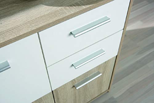 Dmora Mobile Buffet credenza 3 Ante + 2 cassetti-Rovere e Bianco, 77 x 77 x 30 cm
