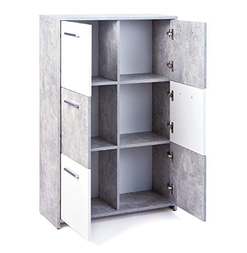 Mobile buffet credenza verticale composto da 6 ante e 6 vani contenitori singoli con maniglie a rilievo in metallo