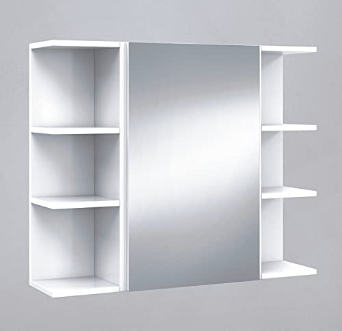 Dmora Pensile ad Angolo per Bagno con Quattro Ripiani, da Utilizzare Come aggiunta a mobili compatibili, Colore Bianco Lucido, cm 20 x 65 x 19.5