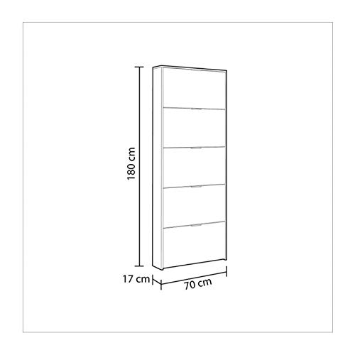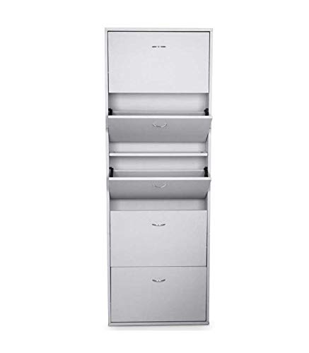 Dmora Scarpiera a Cinque Ante con Apertura a ribalta, Colore Bianco Lucido, cm 70x 17 x h180
