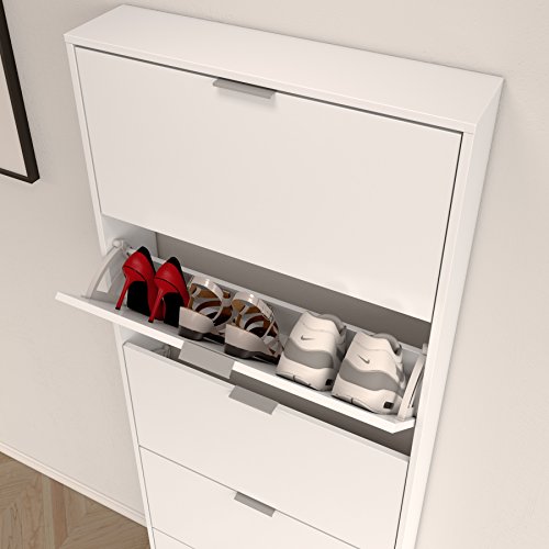 Scarpiera a cinque ante con apertura a ribalta di colore bianco lucido