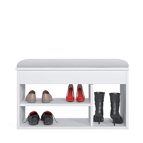 Dmora Scarpiera con Seduta e Ripiani, cm 80 x 31 x 46, Colore Bianco