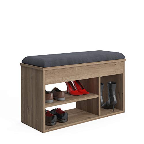 Dmora Scarpiera con Seduta e Ripiani, cm 80 x 31 x 46, Colore Quercia