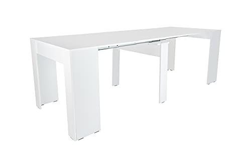 Dmora Tavolo da Pranzo Moderno, Consolle allungabile 10 posti, Misure 90 x 51 x 78 cm (Fino a 237 con allunghe), Colore Bianco