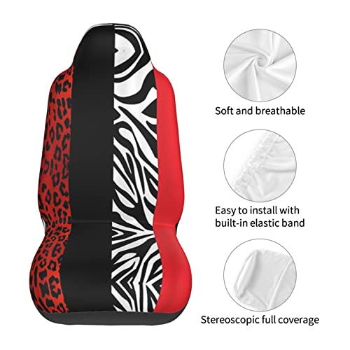 DMORJ Coprisedili per auto, motivo leopardo rosso e zebra, 2 pezzi, universale, adatti per la maggior parte delle auto, SUV, berlina