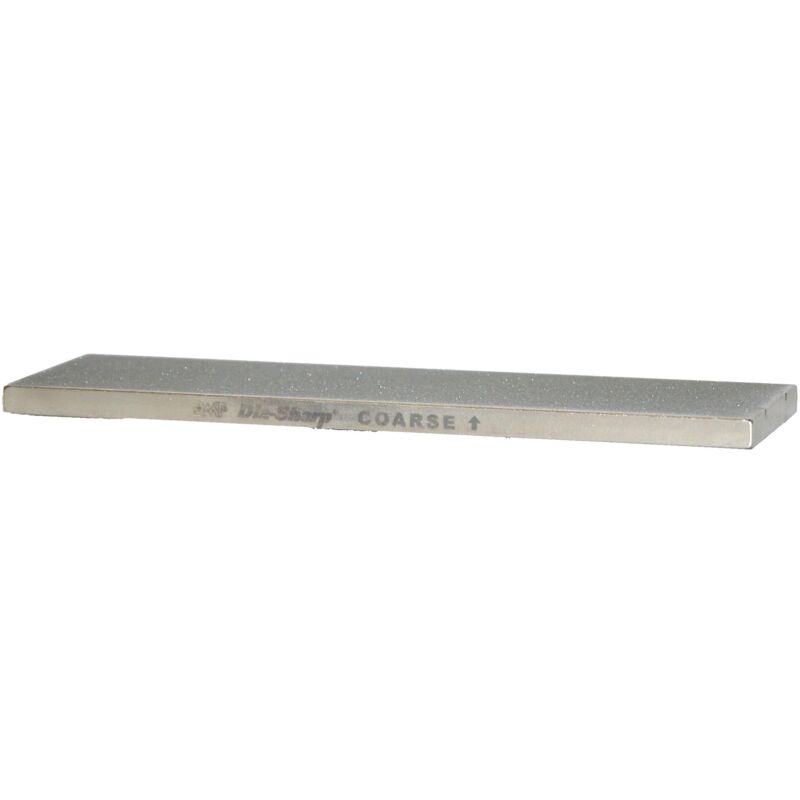 Affilatore DMT DiaSharp Bench Stone. Due lati diamantati misura 15 x 5.1 x 0.65. Un lato è grana grossolana e da una parte è grana extra grossa. Dispone di 12 pollici quadrati di superficie diamantata continua su ogni lato. Ideale per riparare e ripristinare bordi danneggiati.