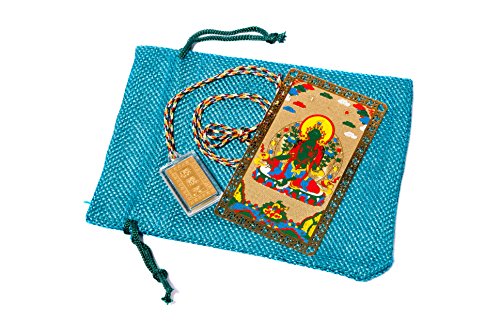 Questa bella pratica tasca formato portando lungo talismano carta incorniciata con motivi del buddista ha l'immagine di Tara verde su un lato e descrizione sul retro. Tara verde può aiutarti a avverare i desideri. Si ritiene che abbia poteri infiniti per superare gli ostacoli e sciogliere tutti i tipi di problemi.