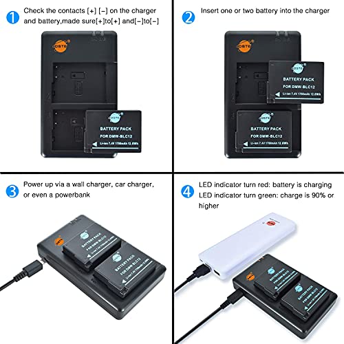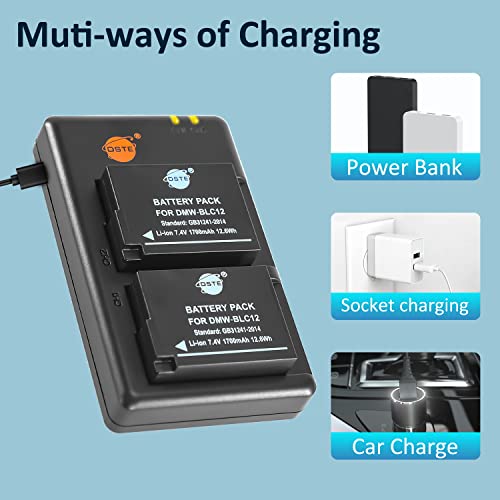 DSTE 2PCS DMW-BLC12 DMW-BLC12E (1700mAh/7.4V) Batteria Caricatore Compatibile per Panasonic Lumix DMC-G7, DMC-GH2, DMC-FZ330, DMC-FZ200, DMC-FZ200GK, DMC-FZ1000