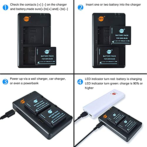 DSTE 2PCS DMW-BLE9 DMW-BLE9E (1500mAh/7.4V) Batteria Caricatore Compatibile per Panasonic Lumix DMC-GF3,DMC-GF3GK,DMC-GF5,DMC-GF6,DMC-LX100 Fotocamera come DMW-BLE9PP DMW-BLG10