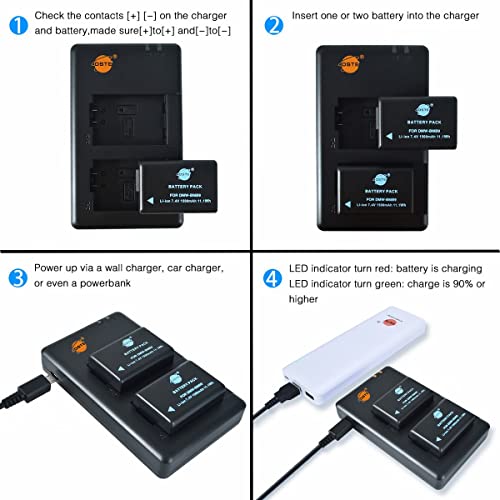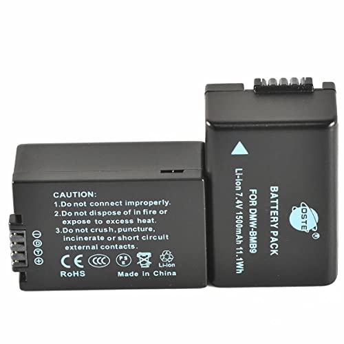 DSTE 2PCS DMW-BMB9 DMW-BMB9E (1500mAh/7.4V) Batteria Caricatore Compatibile per Panasonic Lumix DMC-FZ45,DMC-FZ47,DMC-FZ48,DMC-FZ60,DMC-FZ62,DMC-FZ70,DMC-FZ72,DMC-FZ100,DMC-FZ150