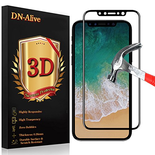 DN-Alive pellicola protettiva per iPhone X, protezione in vetro temperato per lo schermo dell, 3D, nero, durezza: 9H, protezione antigraffio, infrangibile, facile installazione,