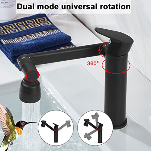 DnKelar Miscelatore Rubinetto per Cucina e Bacin di Nuova Concezione con Maniglia Singola e 2 Modalità di Uscita Dell'acqua, Ogni Giunto Girevole a 360 ° (Nero)