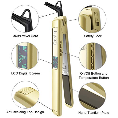 Dnsly Piastra Capelli Professionale Titanio al Anti Crespo Digitale LCD Doppia Tensione Auto Spegnimento (Dorato)